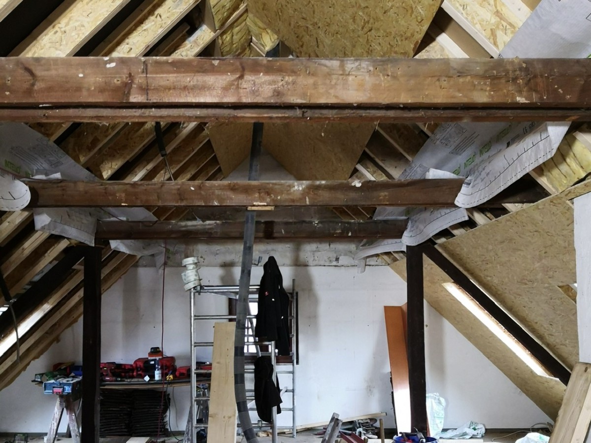 - Dazu statische Ertüchtigung des Dachstuhls, Dämmung nach ENEV